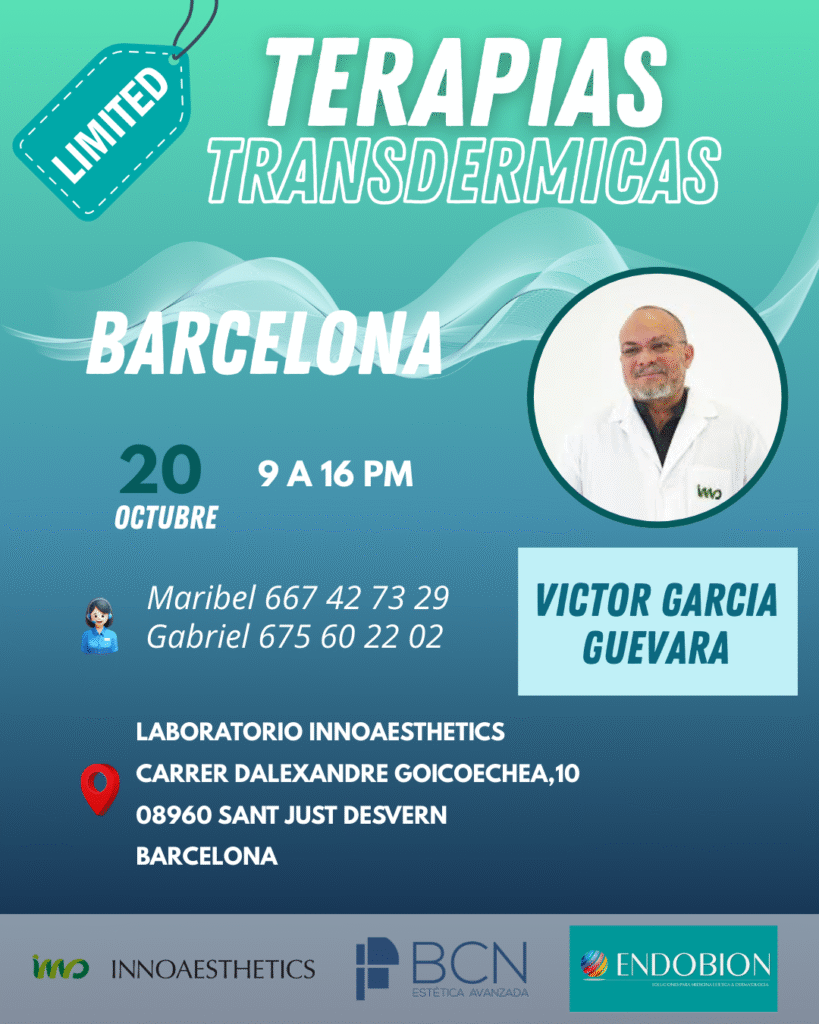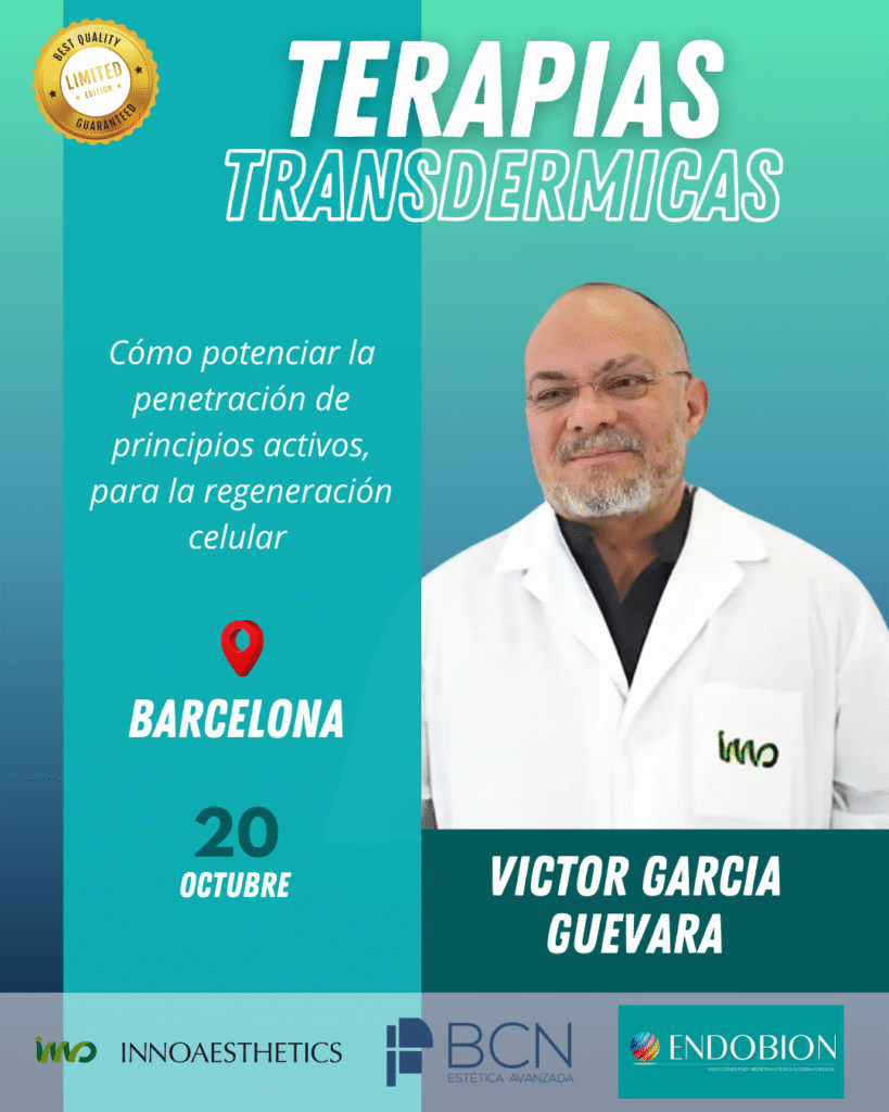 Te esperamos en la formación exclusiva del doctor Víctor Garcia Guevara , experto internacional en medicina estética, sobre terapias transdérmicas avanzadas . Descubra técnicas innovadoras para incrementar la penetración de principios activos en la piel y lograr resultados clínicos superiores en rejuvenecimiento, biorevitalización y reparación cutánea.